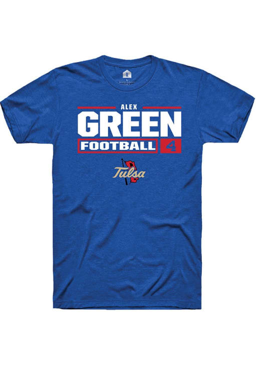 Alex Green Blue Tulsa Golden Hurricane Football NIL Stacked Box Short Sleeve T Shirt