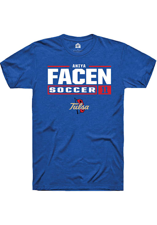 Aniya Facen Blue Tulsa Golden Hurricane NIL Stacked Box Short Sleeve T Shirt