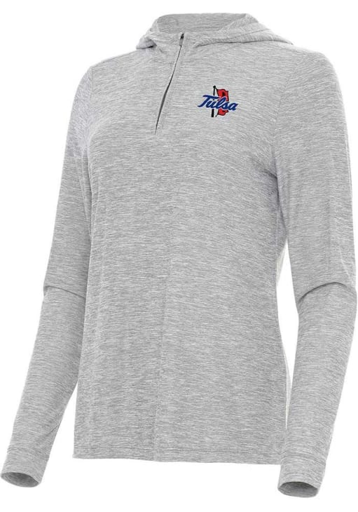 Embrace the warmth and showcase your Golden Hurricanes pride with our Tulsa Golden Hurricane Long Sleeve Qtr Zip. This Womens Grey Daybreak Long Sleeve Pullover offers a soft heathered brushed poly material for the perfect combination of comfort and style. Elevate your everyday look with this must-have Tulsa Golden Hurricane Long Sleeve Qtr Zip.