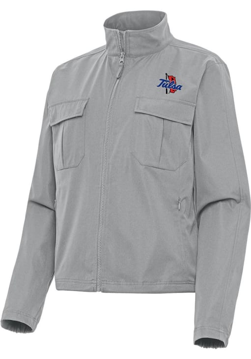 Stay warm and cozy with this Tulsa Golden Hurricane Womens Grey Even Par Light Weight Jacket! Cheer on the Golden Hurricanes in this Tulsa Light Weight Jacket. With a double layer collar and flat patch chest pockets, you won't want to be caught without this Light Weight Jacket on gameday.