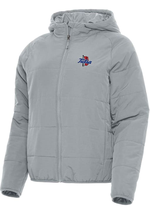 Stay cozy in this Tulsa Golden Hurricane Womens Grey Universe Filled Jacket. This Golden Hurricanes Filled Coat is a great way to stay warm and show your Tulsa spirit in even the coldest weather. Don't leave home without this Tulsa Golden Hurricane Filled Jacket, which features a quilted puffer with on seam hand pockets.
