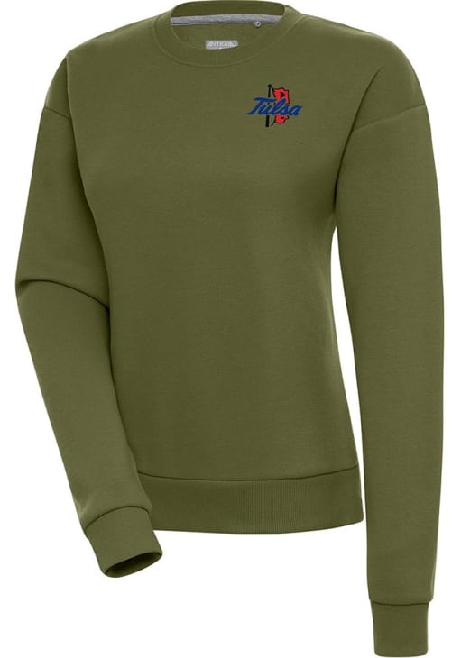 Womens Tulsa Golden Hurricane Olive Antigua Victory Crew Sweatshirt