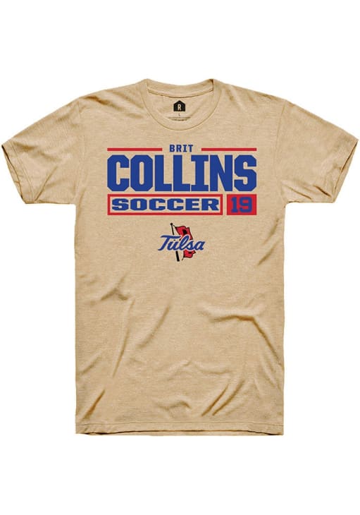 Brit Collins Tan Tulsa Golden Hurricane NIL Stacked Box Short Sleeve T Shirt
