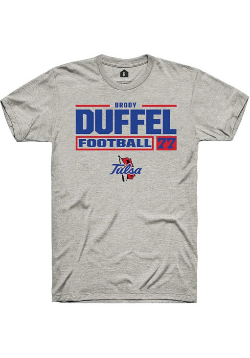 Brody Duffel Ash Tulsa Golden Hurricane Football NIL Stacked Box Short Sleeve T Shirt