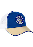 Product Details Product Details Colosseum Trucker HatFront embroidered team logoGarment washed cotton crown and visorContrast trucker meshBack team nameSnap closureCotton/Poly BlendCurved BillLow CrownUnstructuredWipe clean with cloth or cleaning kitImported Officially Licensed This Blue Golden Hurricanes Adjustable Hat features a two layer woven applique logo on mid profile crown and snap adjustable closure.