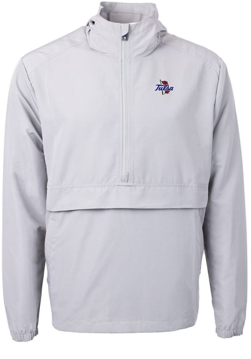 Mens Tulsa Golden Hurricane Grey Cutter and Buck Charter Eco Pullover Jackets