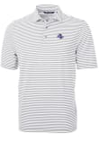 Mens Tulsa Golden Hurricane Grey Cutter and Buck Virtue Eco Pique Stripe Short Sleeve Polo Shirt