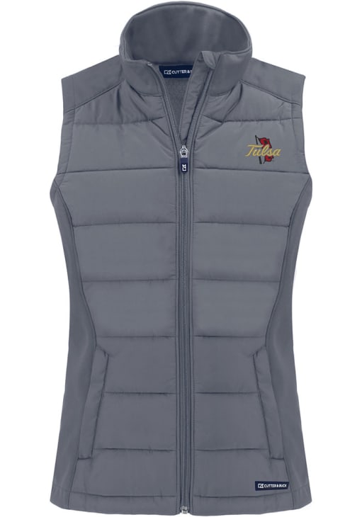 Gear up for the upcoming tailgate with the ultimate Tulsa Golden Hurricane Womens Grey Vest. Stay warm in this Tulsa Evoke Sleeveless Jacket, which features a 100% recycled polyester bonded honeycomb softshell.