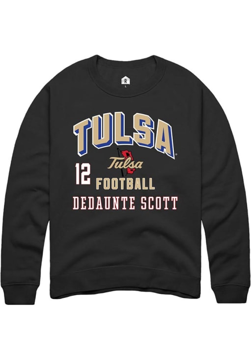 Support your Tulsa Golden Hurricane and favorite Dedaunte Scott in this Tulsa Golden Hurricane Mens Black Football NIL Arch Logo Player Crew. This Crew Sweatshirt features a NIL graphic, and is sure to stand out in the stadium. Perfect to wear on game day or any day!
