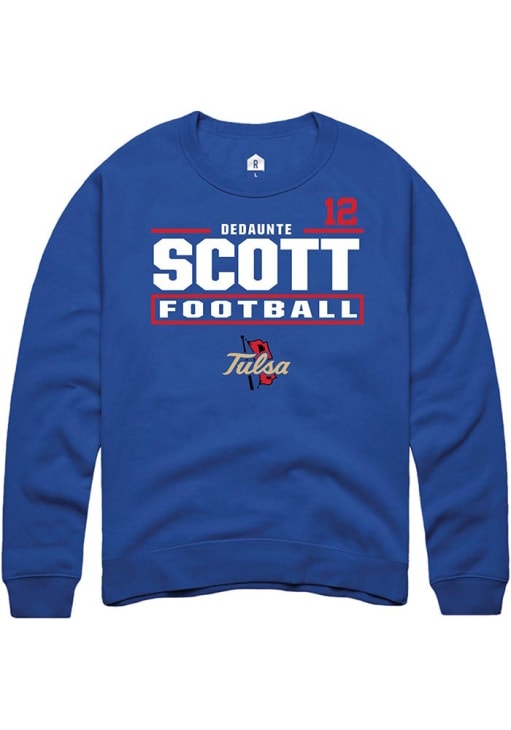 Support your Tulsa Golden Hurricane and favorite Dedaunte Scott in this Tulsa Golden Hurricane Mens Blue Football NIL Stacked Box Player Crew. This Crew Sweatshirt features a NIL graphic, and is sure to stand out in the stadium. Perfect to wear on game day or any day!