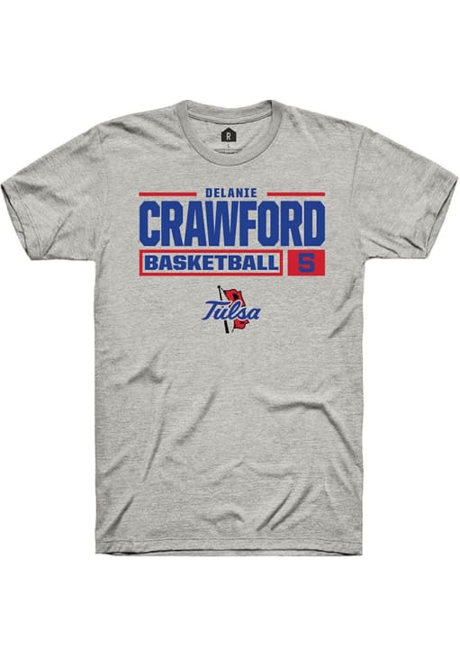 Delanie Crawford Ash Tulsa Golden Hurricane NIL Stacked Box Short Sleeve T Shirt