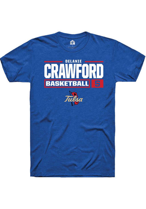 Delanie Crawford Blue Tulsa Golden Hurricane NIL Stacked Box Short Sleeve T Shirt