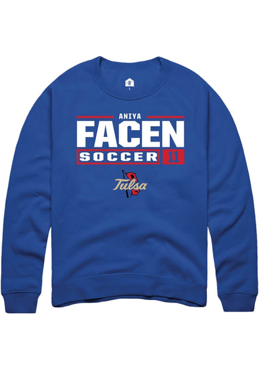 Aniya Facen Rally Mens Blue Tulsa Golden Hurricane NIL Stacked Box Crew Sweatshirt