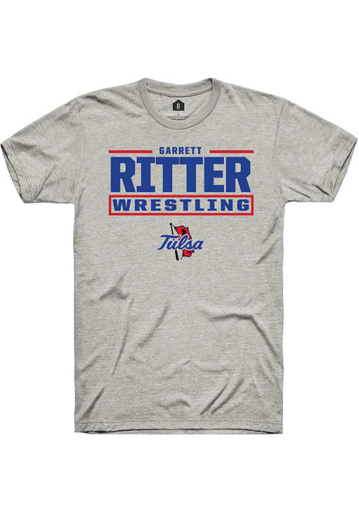 Garrett Ritter Ash Tulsa Golden Hurricane NIL Stacked Box Short Sleeve T Shirt