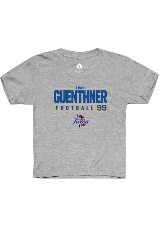 Evan Guenthner Rally Youth Grey Tulsa Golden Hurricane NIL Stacked Box Short Sleeve T-Shirt