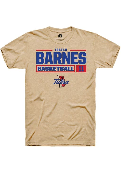 Isaiah Barnes Tan Tulsa Golden Hurricane NIL Stacked Box Short Sleeve T Shirt