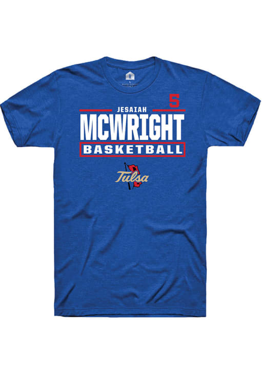 Jesaiah McWright Blue Tulsa Golden Hurricane NIL Stacked Box Short Sleeve T Shirt
