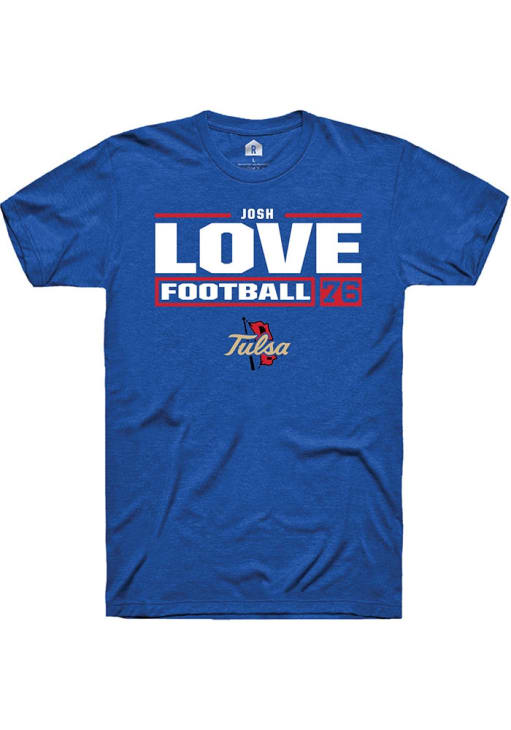 Josh Love Blue Tulsa Golden Hurricane NIL Stacked Box Short Sleeve T Shirt