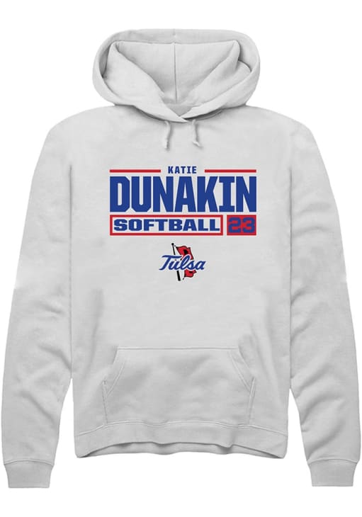 Katie Dunakin Rally Mens White Tulsa Golden Hurricane NIL Stacked Box Hooded Sweatshirt
