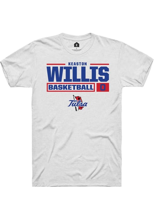 Keaston Willis White Tulsa Golden Hurricane NIL Stacked Box Short Sleeve T Shirt