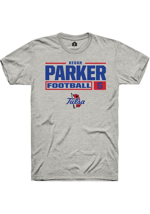 Keuan Parker Ash Tulsa Golden Hurricane Football NIL Stacked Box Short Sleeve T Shirt