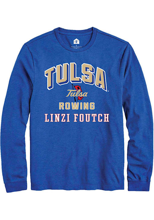 Show your Tulsa Golden Hurricane spirit in this Tulsa Blue T Shirt! This Tulsa NIL Arch Logo Long Sleeve T Shirt makes a great layer for cooler nights cheering on the Golden Hurricanes. Featuring a custom graphic with player's name and number, this Tulsa Golden Hurricane Long Sleeve Tee is an essential addition for every fan. Go Hurrianes!