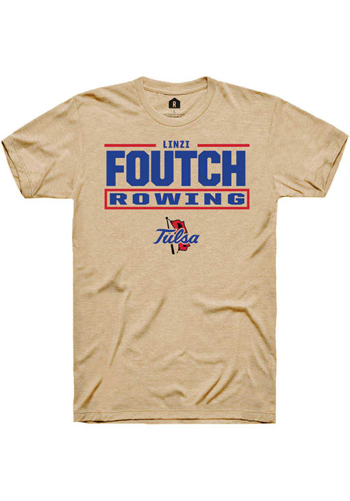 Linzi Foutch Tan Tulsa Golden Hurricane NIL Stacked Box Short Sleeve T Shirt