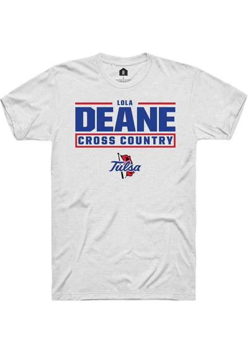Lola Deane White Tulsa Golden Hurricane NIL Stacked Box Short Sleeve T Shirt