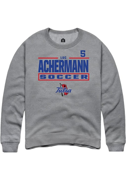 Support your Tulsa Golden Hurricane and favorite Luc Achermann in this Tulsa Golden Hurricane Mens Graphite NIL Stacked Box Player Crew. This Crew Sweatshirt features a NIL graphic, and is sure to stand out in the stadium. Perfect to wear on game day or any day!