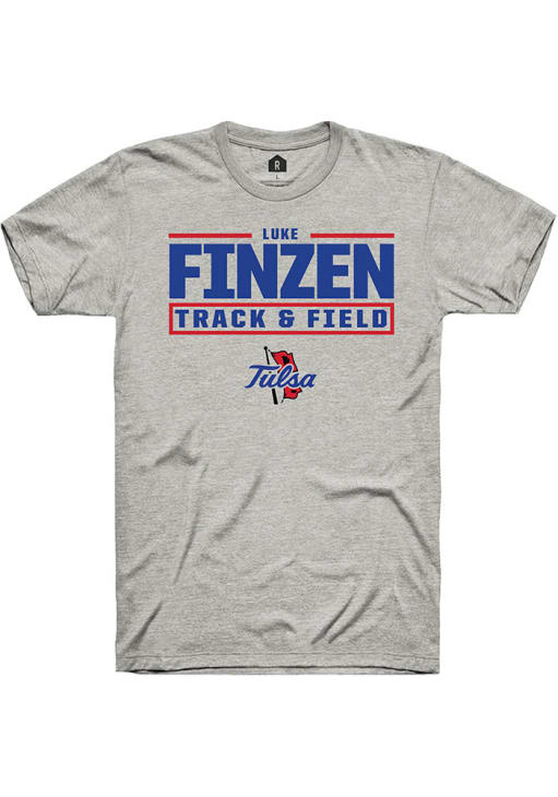 Luke Finzen Ash Tulsa Golden Hurricane NIL Stacked Box Short Sleeve T Shirt