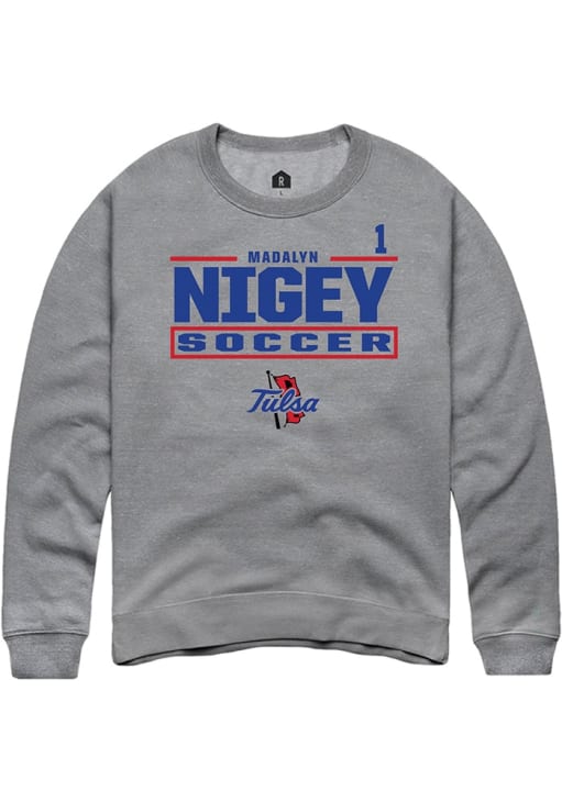 Support your Tulsa Golden Hurricane and favorite Madalyn Nigey in this Tulsa Golden Hurricane Mens Graphite NIL Stacked Box Player Crew. This Crew Sweatshirt features a NIL graphic, and is sure to stand out in the stadium. Perfect to wear on game day or any day!