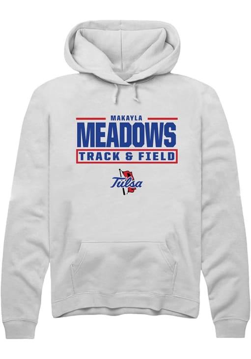 Makayla Meadows Rally Mens White Tulsa Golden Hurricane NIL Stacked Box Hooded Sweatshirt