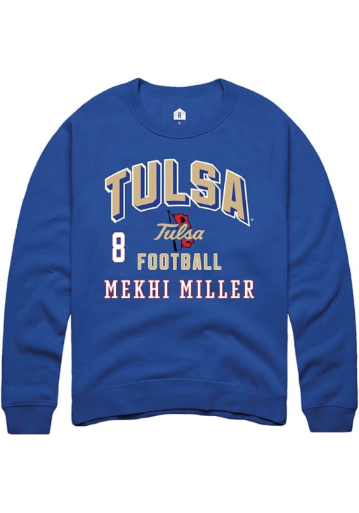 Support your Tulsa Golden Hurricane and favorite Mekhi Miller in this Tulsa Golden Hurricane Mens Blue Football NIL Arch Logo Player Crew. This Crew Sweatshirt features a NIL graphic, and is sure to stand out in the stadium. Perfect to wear on game day or any day!