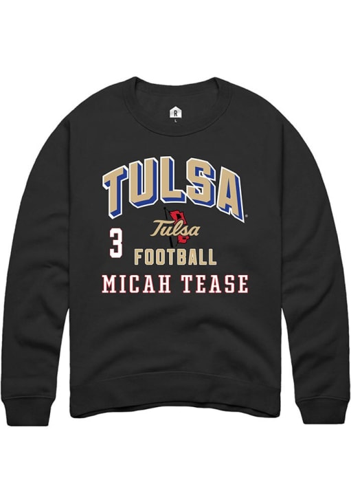 Support your Tulsa Golden Hurricane and favorite Micah Tease in this Tulsa Golden Hurricane Mens Black Football NIL Arch Logo Player Crew. This Crew Sweatshirt features a NIL graphic, and is sure to stand out in the stadium. Perfect to wear on game day or any day!