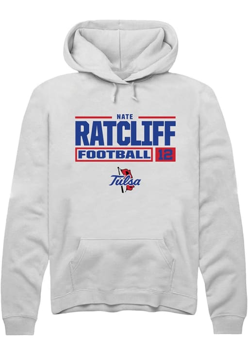 Nate Ratcliff Rally Mens White Tulsa Golden Hurricane Football NIL Stacked Box Hooded Sweatshirt