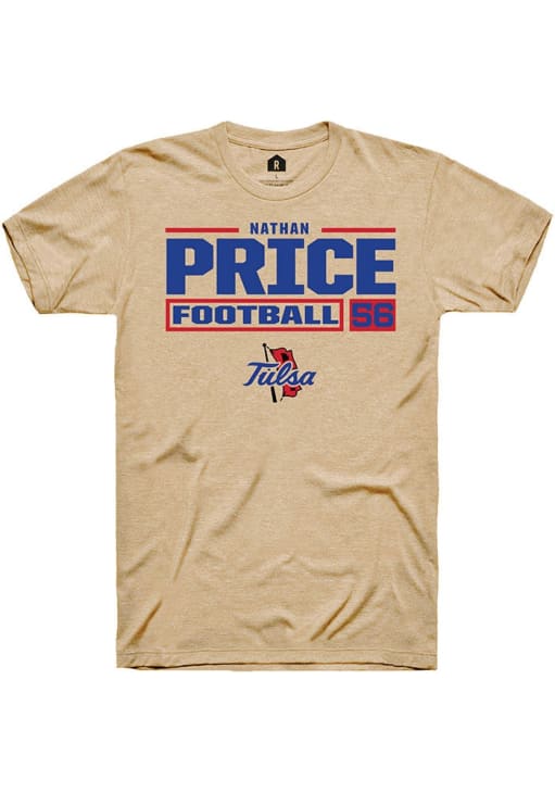 Nathan Price Tan Tulsa Golden Hurricane Football NIL Stacked Box Short Sleeve T Shirt