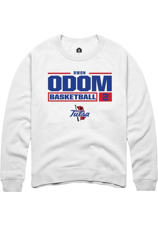 Dwon Odom Rally Mens White Tulsa Golden Hurricane NIL Stacked Box Crew Sweatshirt