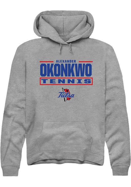 Alexander Okonkwo Rally Mens Graphite Tulsa Golden Hurricane NIL Stacked Box Hooded Sweatshirt