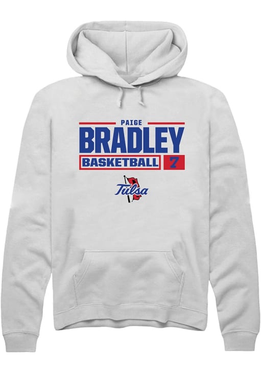 Paige Bradley Rally Mens White Tulsa Golden Hurricane NIL Stacked Box Hooded Sweatshirt