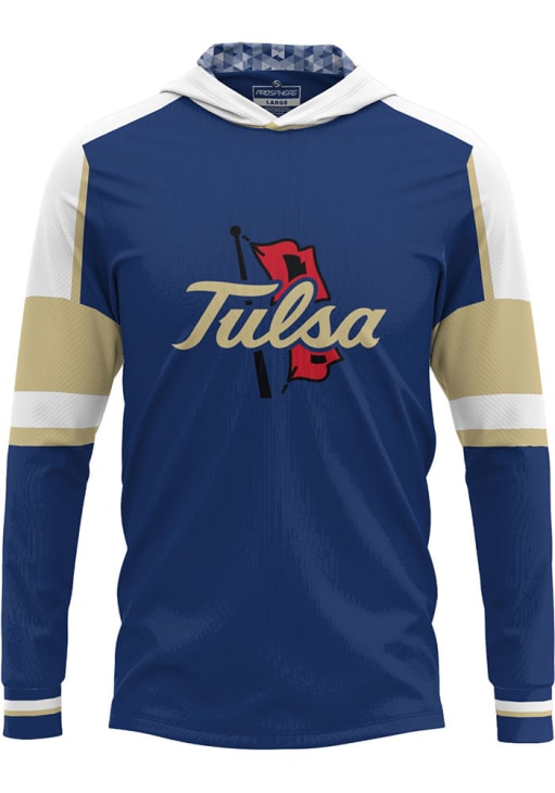 Embrace your Golden Hurricanes pride and showcase your team spirit with confidence in this Tulsa Golden Hurricane Long Sleeve Hoodie! Stay warm and stylish with the Tulsa Mens Navy Blue Throwback Hooded Sweatshirt. Designed with fully sublimated long sleeve hooded tee with an active and comfortable construction, this Golden Hurricanes Long Sleeve Hoodie is a must-have for dedicated fans.