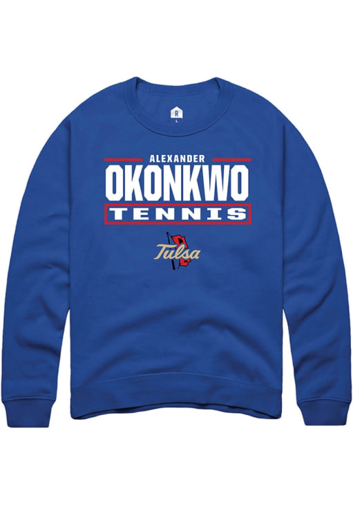 Alexander Okonkwo Rally Mens Blue Tulsa Golden Hurricane NIL Stacked Box Crew Sweatshirt