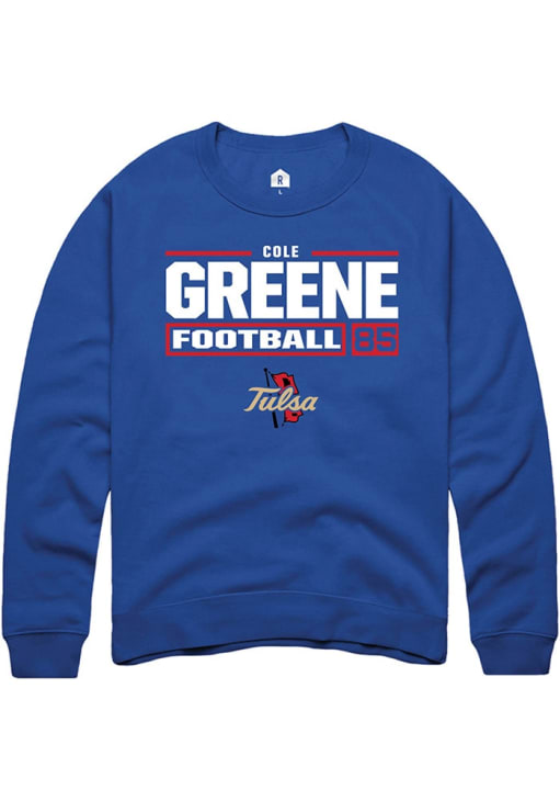 Cole Greene Rally Mens Blue Tulsa Golden Hurricane Football NIL Stacked Box Crew Sweatshirt