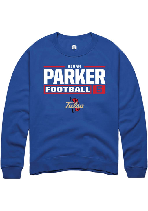 Keuan Parker Rally Mens Blue Tulsa Golden Hurricane Football NIL Stacked Box Crew Sweatshirt