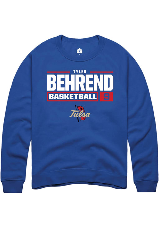 Tyler Behrend Rally Mens Blue Tulsa Golden Hurricane NIL Stacked Box Crew Sweatshirt