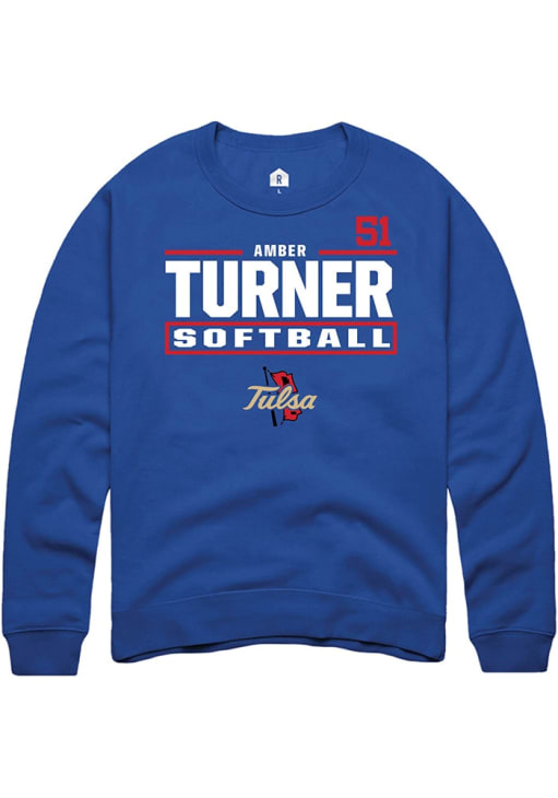 Amber Turner Rally Mens Blue Tulsa Golden Hurricane NIL Stacked Box Crew Sweatshirt