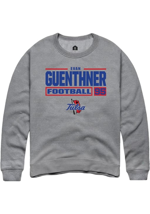 Evan Guenthner Rally Mens Graphite Tulsa Golden Hurricane Football NIL Stacked Box Crew Sweatshirt