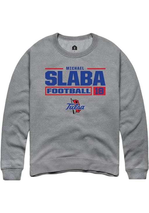 Michael Slaba Rally Mens Graphite Tulsa Golden Hurricane Football NIL Stacked Box Crew Sweatshirt