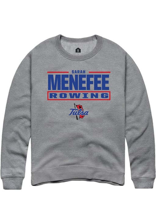 SARAH Menefee Rally Mens Graphite Tulsa Golden Hurricane NIL Stacked Box Crew Sweatshirt