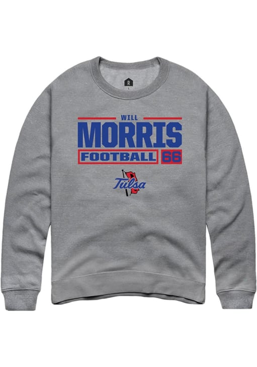 Will Morris Rally Mens Graphite Tulsa Golden Hurricane Football NIL Stacked Box Crew Sweatshirt