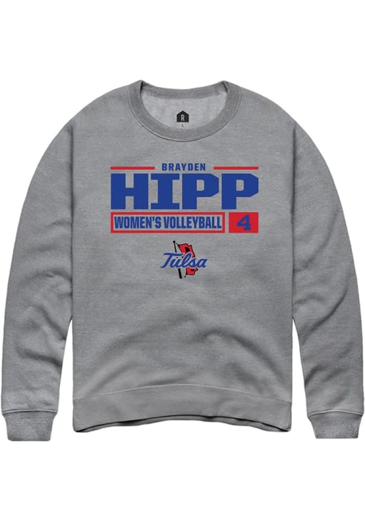 Brayden Hipp Rally Mens Graphite Tulsa Golden Hurricane NIL Stacked Box Crew Sweatshirt